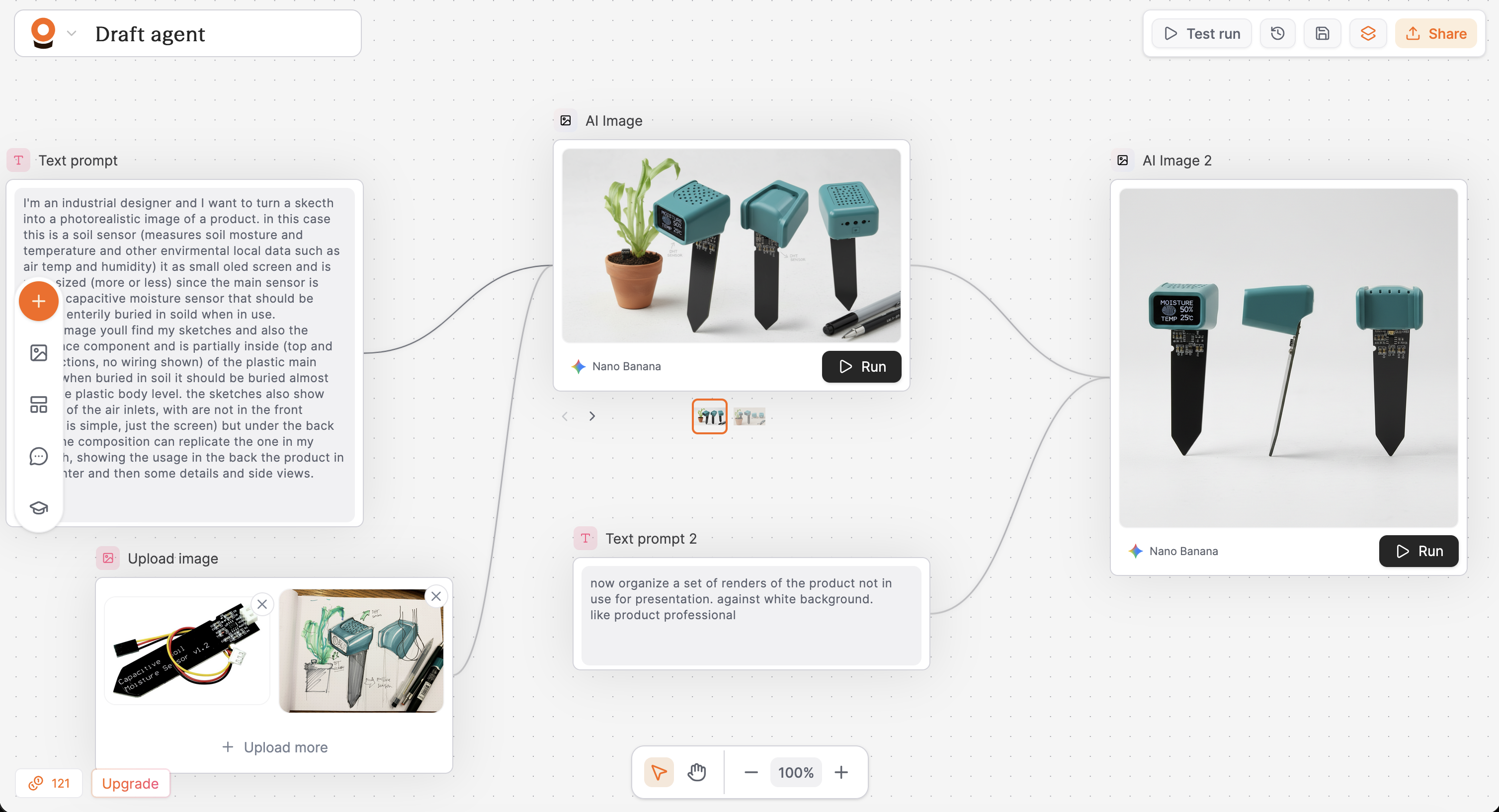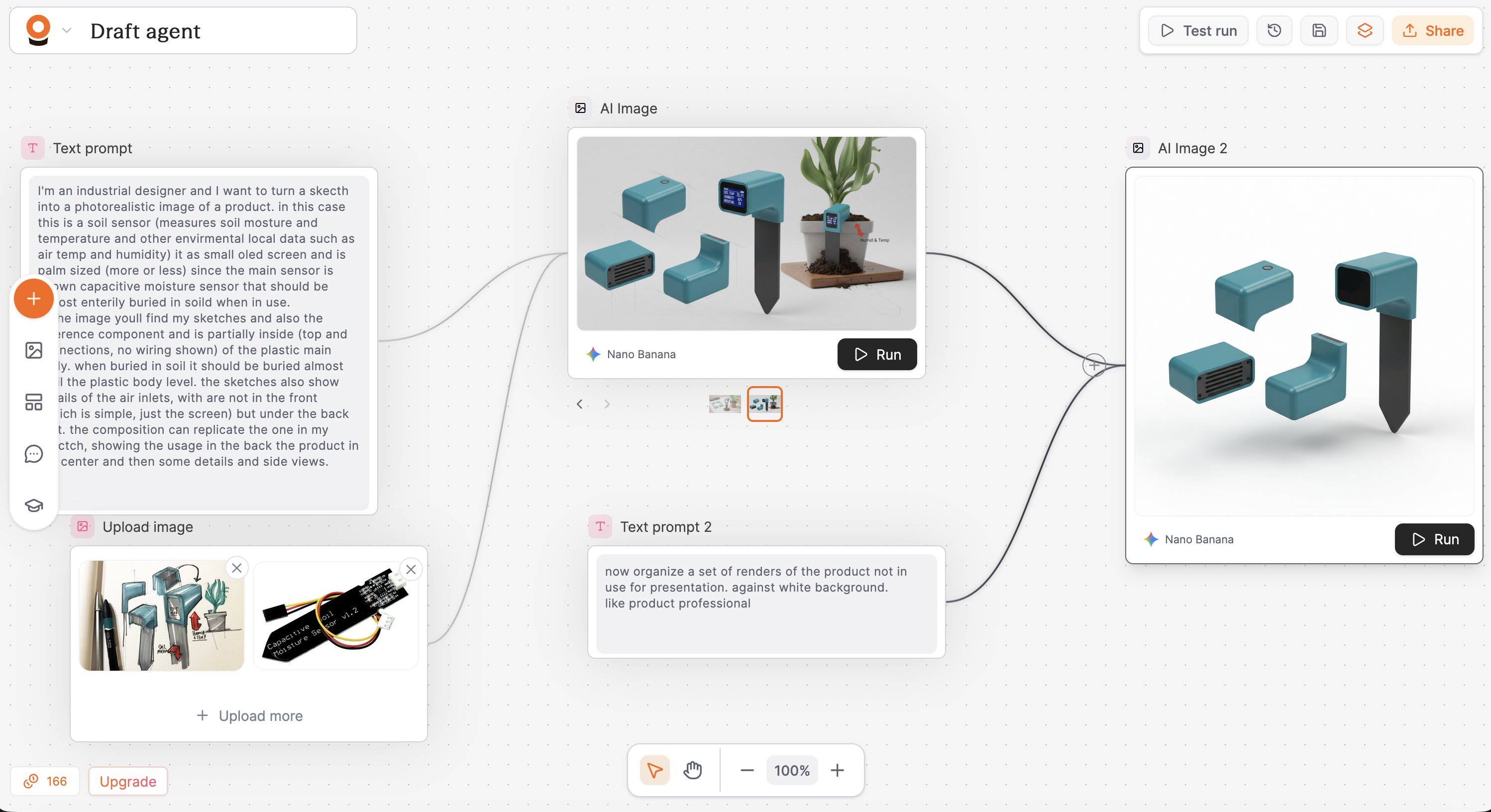 Assumindo alguns erros de interpretação, principalmente no que toca à integração do componente decidi agarrar nuns renders de demonstração recentes e numa receita de workflow fornecida pelo próprio Pletor.AI e preparar um photoshoot profissional do (não-)produto de demonstração que havia desenhado no contexto da produção de recursos para o Fusion360:
