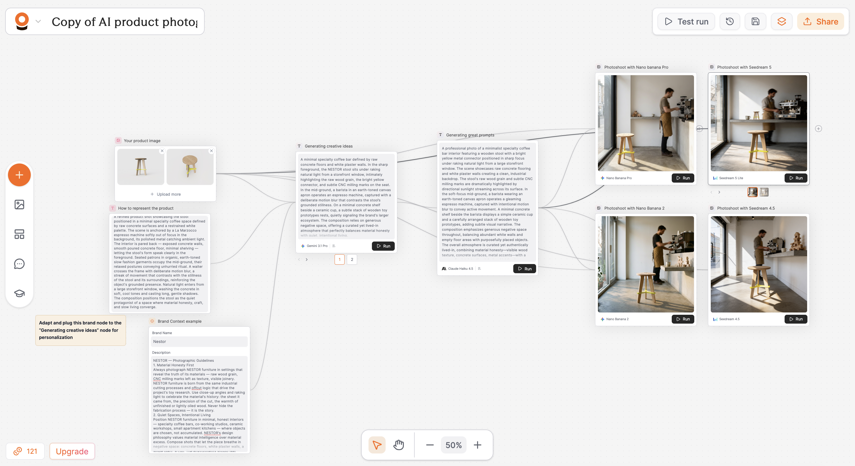 6. Modular Storytelling Compose images that can function alone but gain meaning in sequence — a triptych moving from raw sheet material to nested cutting plan to finished stool in situ, or from furniture in a café to toy in a child's hand. NESTOR operates as an interconnected system where waste from one process becomes input for another. The photography should mirror this circularity, inviting the viewer to follow the material's journey across frames."